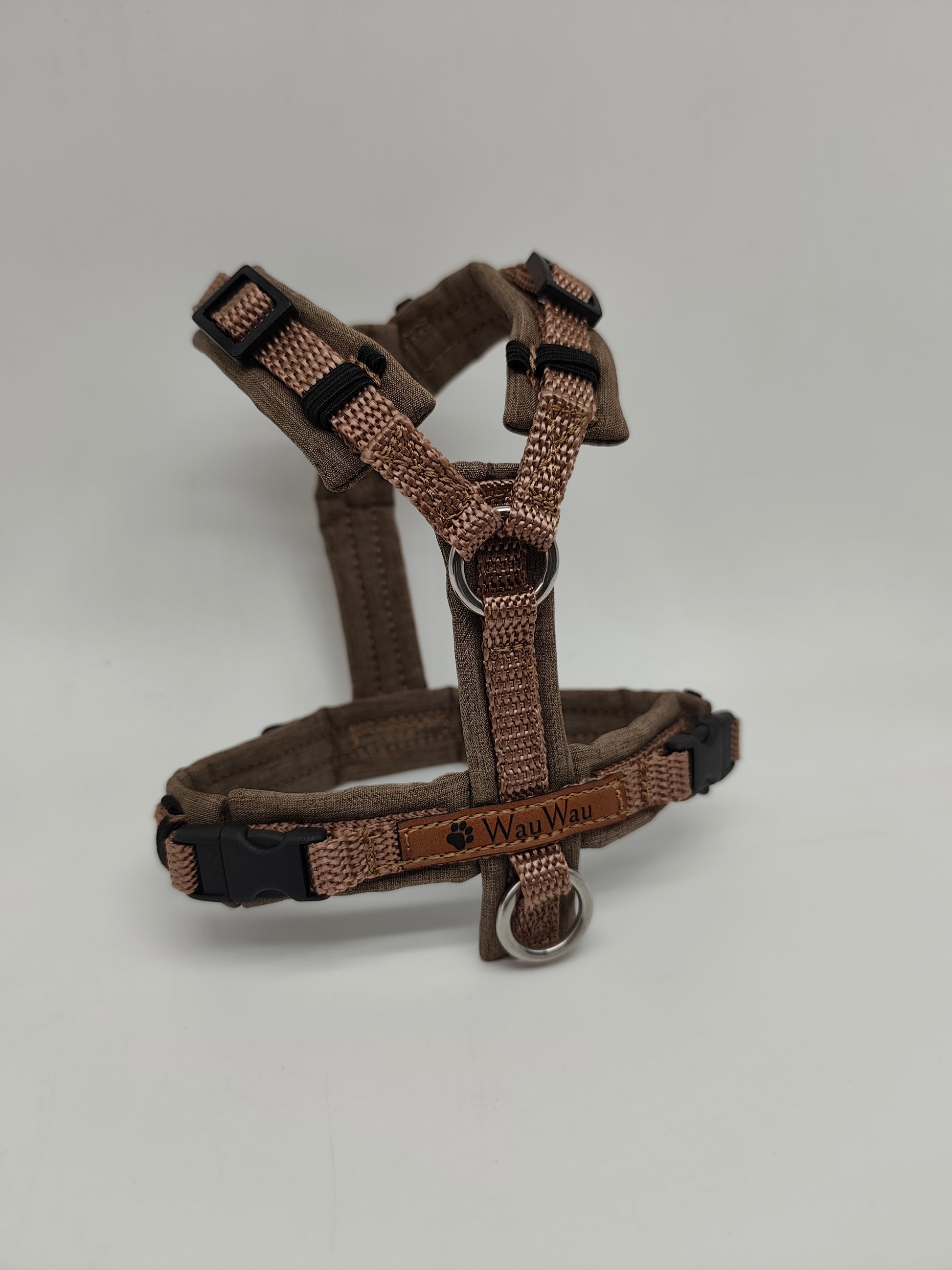 - Fast das gesamte Gurtband und die Verschlüsse sind mit Polster unterlegt. Es ist an vier Stellen um ein paar cm verstellbar, falls der Hund zu oder abnimmt.